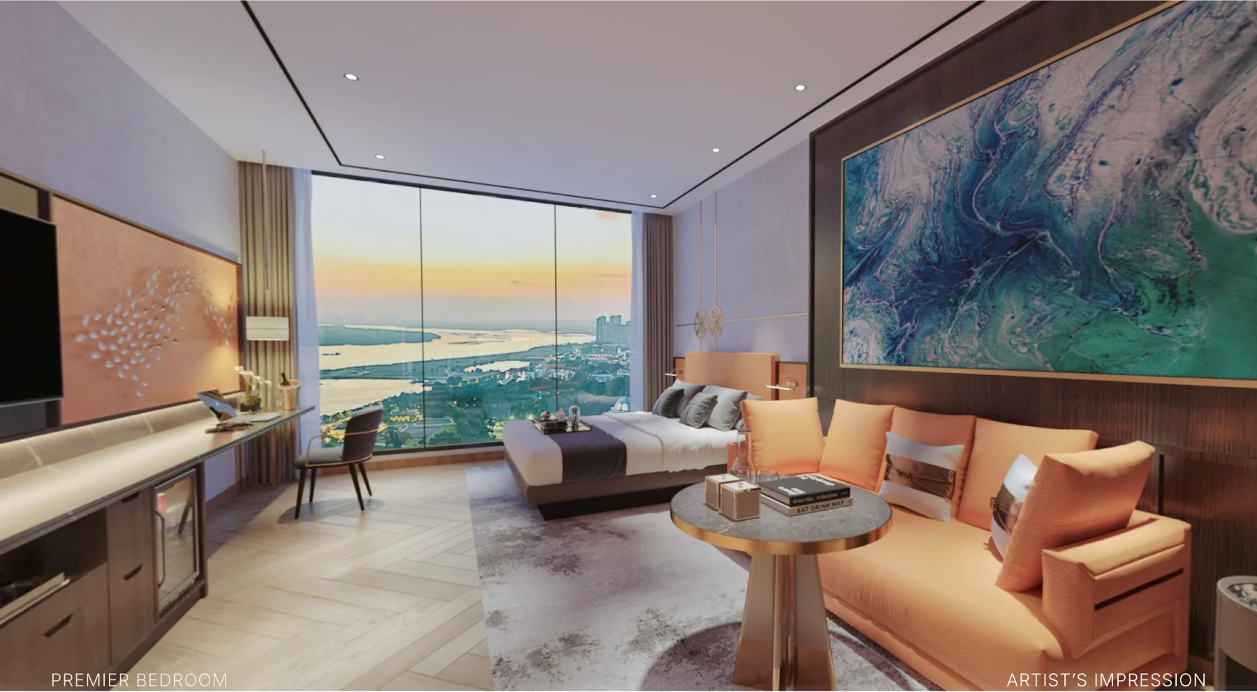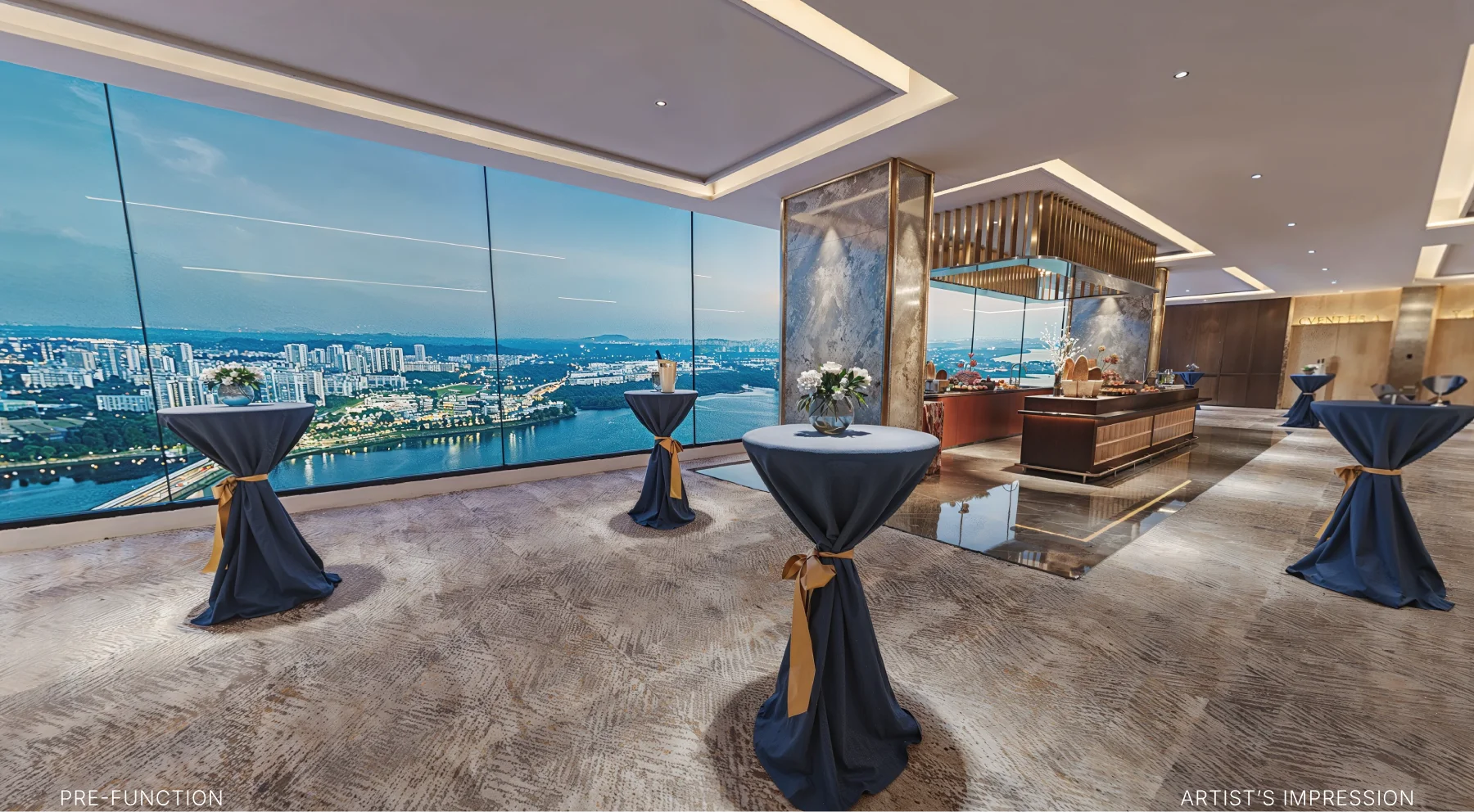 The signature Celestial Glass-Bottom Pool is Johor’s first-ever clear-bottom pool, offering breathtaking skyline views of both cities.